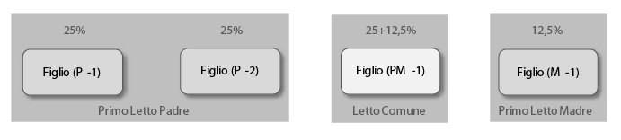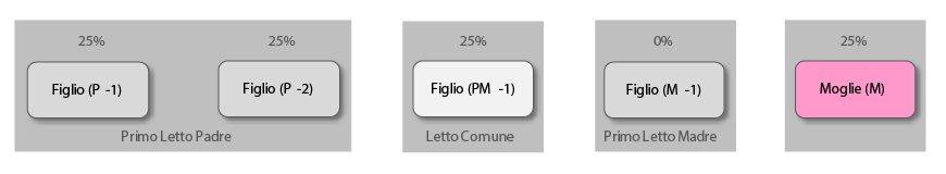 A seguito di quanto sopra emerge che uno dei tre figli (PM-1) viene ad avere una quota maggiore della Holding di Famiglia (peraltro per un importo importante, ossia il 50% in più) rispetto a ciascuno degli altri due figli (di primo letto) del marito (P), ossia (P-1) e (P-2). Si viene dunque a creare una prima disparità tra i tre figli del marito (P). Inoltre, il figlio di primo letto della moglie (M), ossia (M-1), entra nella Holding di Famiglia con una quota di ⅛ (pur non essendo mai stato parte di quella “Famiglia”).